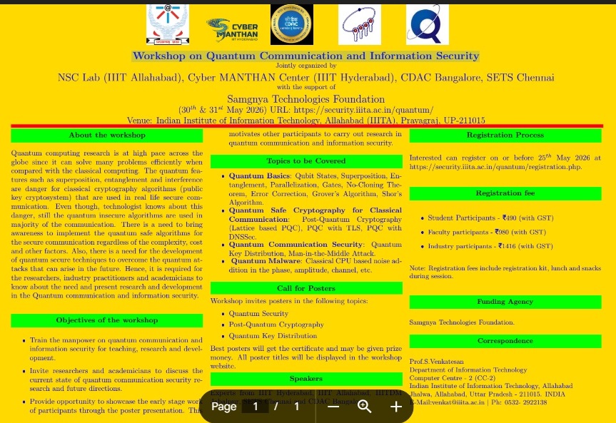The Department of Applied Sciences, Indian Institute of Information Technology Allahabad (IIIT-A) is going to organise a workshop on Machine Learning in Survival Analysis with Hands-on R during July 06-11, 2026. ...More